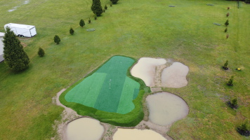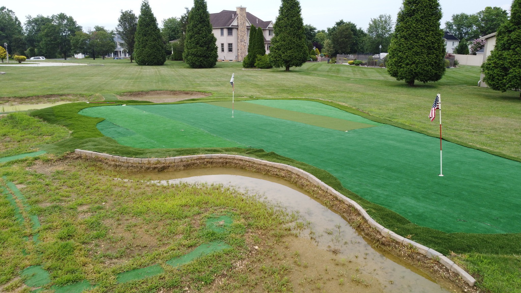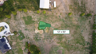 Sep 2022 - I finally expanded the green! I added a 12 x 50ft section of green right in the middle. Now shots have plenty of room to stop. The addition also makes for more pin placements. I currently have 4 holes cut and plan to add at least 3 more, which would make 63 different hole configurations possible, 7 different pin placements x 9 tee boxes = 63!