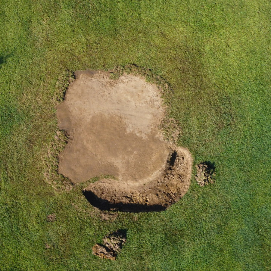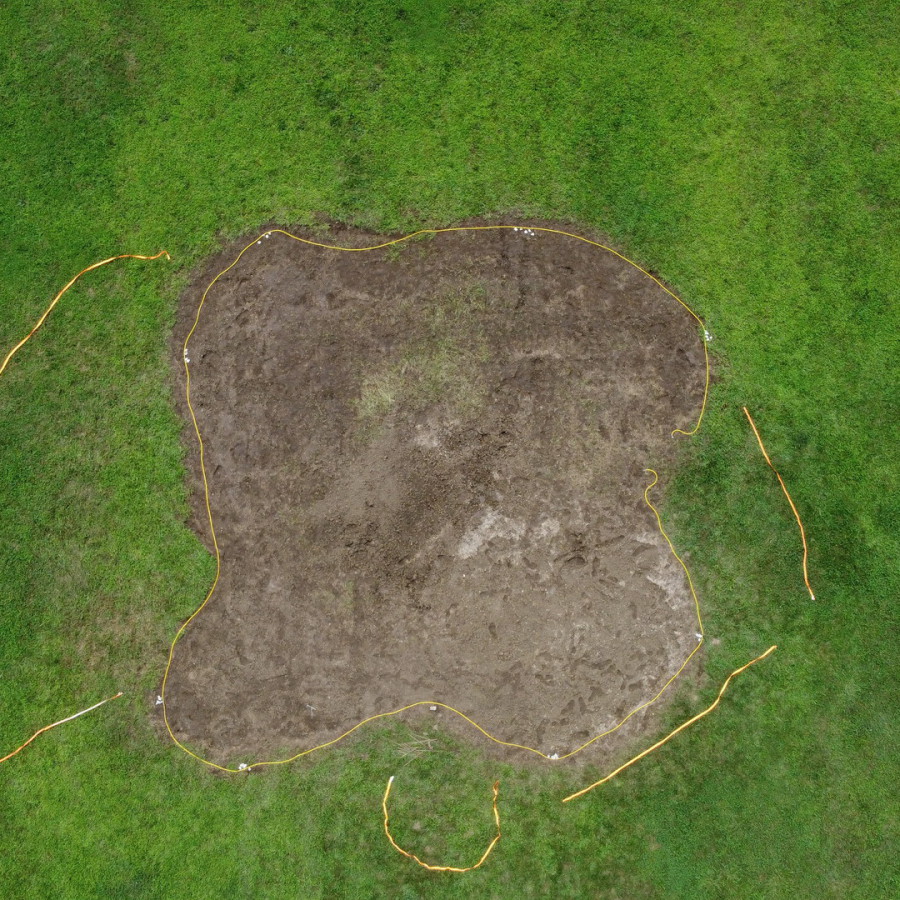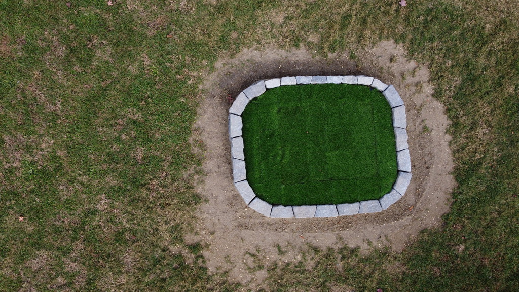 Build: Remove sod. Backfill with dirt to bring it above the ground level and angle so water will drain off. Where did I get the dirt? I dug out a big bunker.