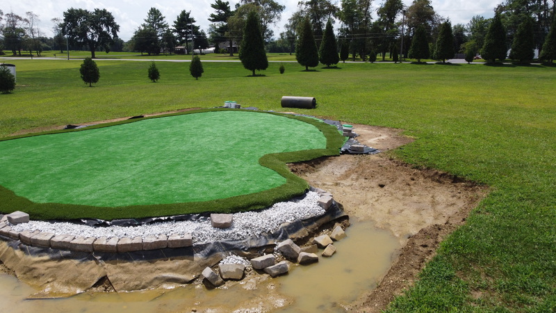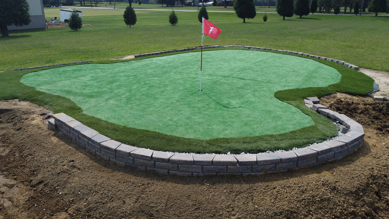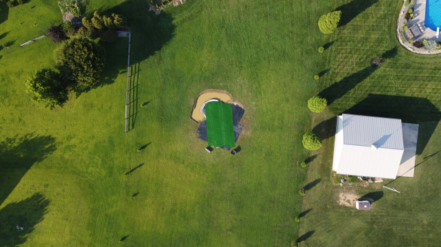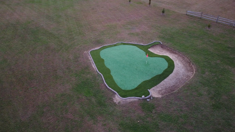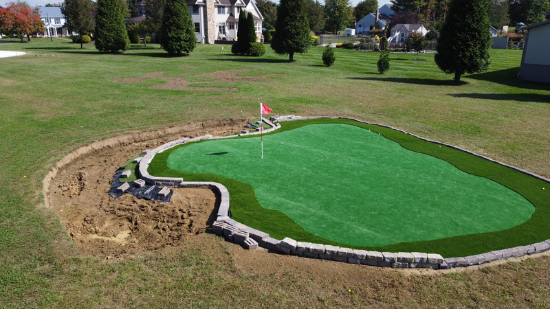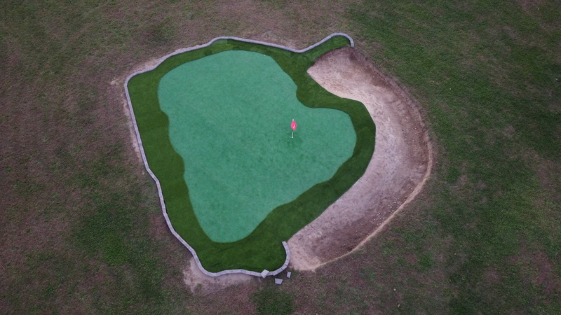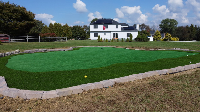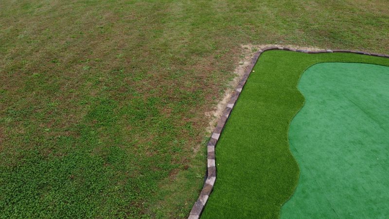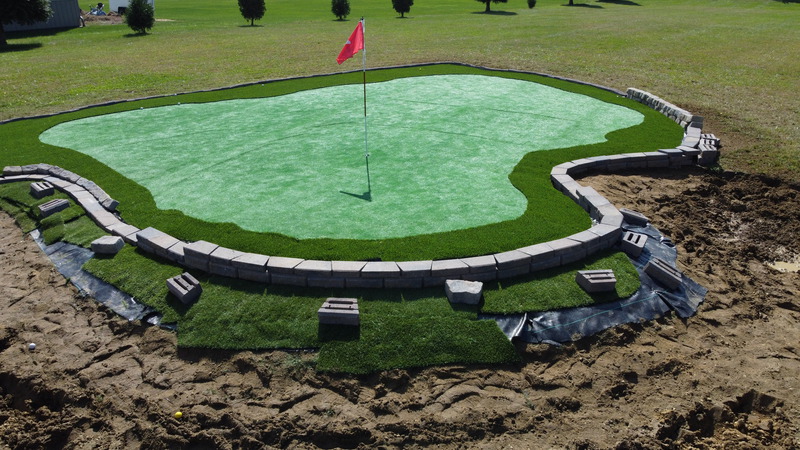 Size: First thing to consider, Artificial grass is expensive. I found that the minimum size of a par 3 green is 60 x 60 =3600 sq ft. For a chip and putt it was 30 x 30 = 900 sq ft. The price for artificial grass for the green was $.60 sq ft. up to $4. I went with the lowest price. I could always upgrade in the future. To make a chip and putt size (900 sq ft x .60) would be $540 just for the grass, not including any rough around the green, or material for underneath.