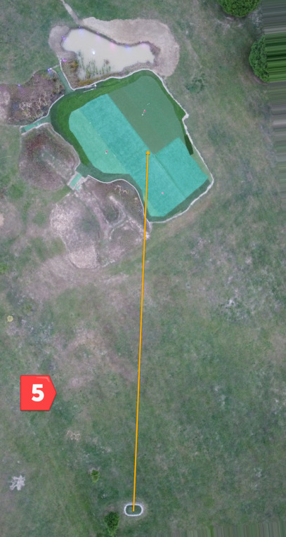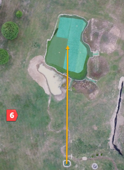 #4 - "The road behind" Elevated tee, uphill, 5 iron.