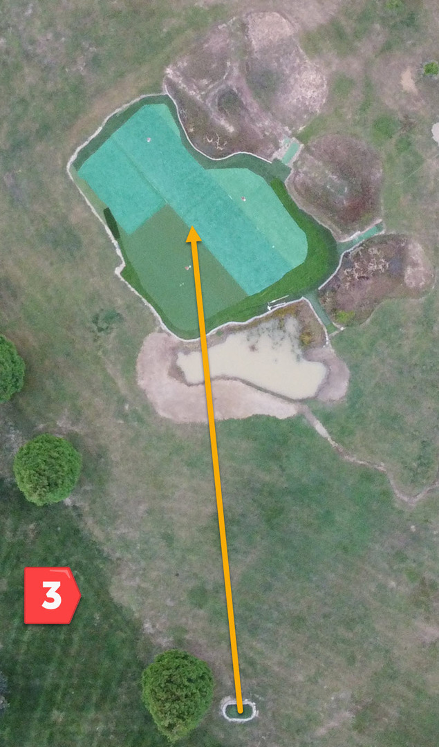 #1 "Splash test" Use 8 or 7 iron to keep it dry.